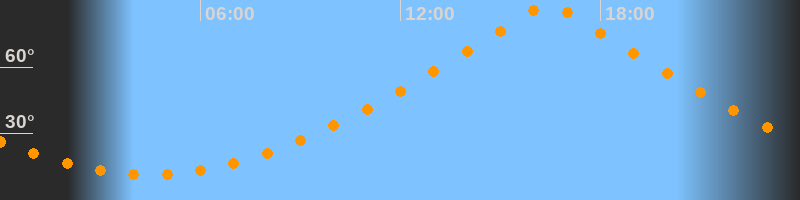 | Höchster Stand (Kulmination) | 16:27 Uhr (h = 89,7°) |