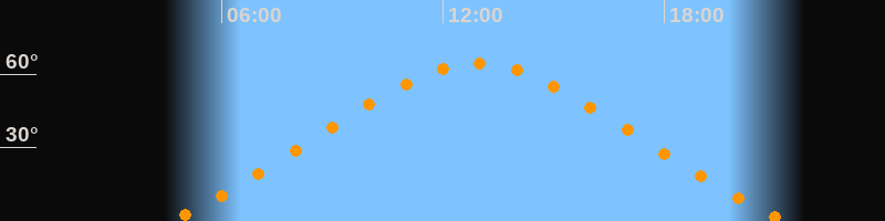 Höchster Stand (Kulmination)12:56 Uhr (h = 64,2°)