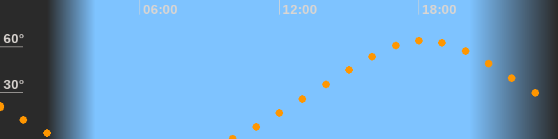 Höchster Stand (Kulmination)18:13 Uhr (h = 64,2°)