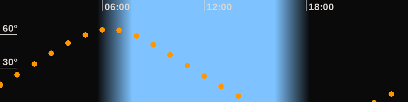 Höchster Stand (Kulmination)06:25 Uhr (h = 64,2°)