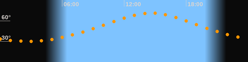 | Höchster Stand (Kulmination) | 14:34 Uhr (h = 71,3°) |