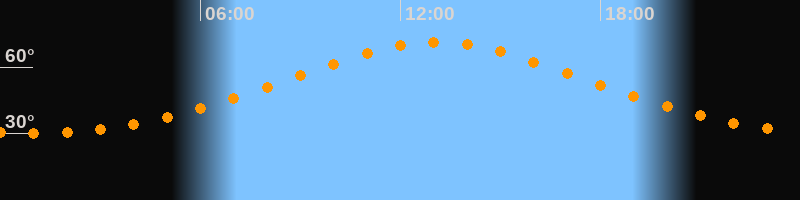 | Höchster Stand (Kulmination) | 13:05 Uhr (h = 71,3°) |