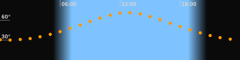 | Höchster Stand (Kulmination) | 12:45 Uhr (h = 71,3°) |
