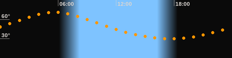 | Höchster Stand (Kulmination) | 05:37 Uhr (h = 71,3°) |