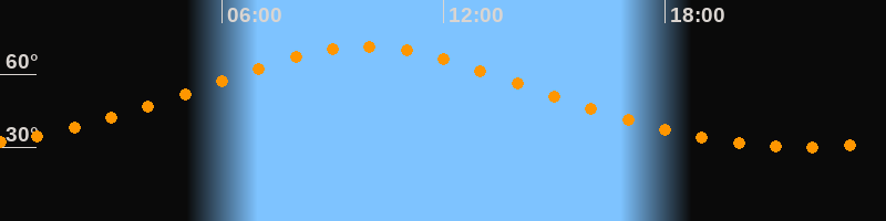 | Höchster Stand (Kulmination) | 09:54 Uhr (h = 71,3°) |