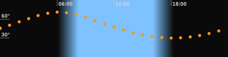 | Höchster Stand (Kulmination) | 06:10 Uhr (h = 71,3°) |
