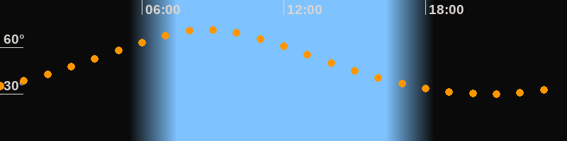 | Höchster Stand (Kulmination) | 08:44 Uhr (h = 71,3°) |