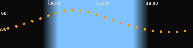 | Höchster Stand (Kulmination) | 09:13 Uhr (h = 71,3°) |