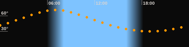 | Höchster Stand (Kulmination) | 07:03 Uhr (h = 71,3°) |