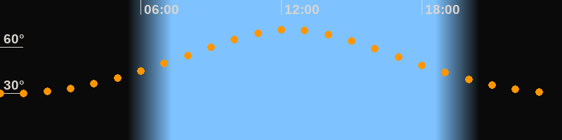 | Höchster Stand (Kulmination) | 12:23 Uhr (h = 71,3°) |