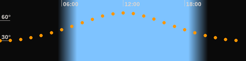 | Höchster Stand (Kulmination) | 12:01 Uhr (h = 71,3°) |
