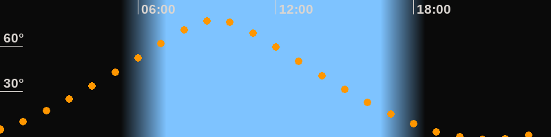 Höchster Stand (Kulmination)09:21 Uhr (h = 77,1°)