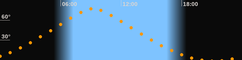 Höchster Stand (Kulmination)09:13 Uhr (h = 77,1°)