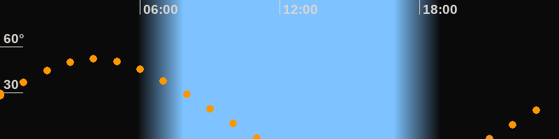 | Aufgang | 20:53 Uhr im Osten (αAz = 68,9°) |