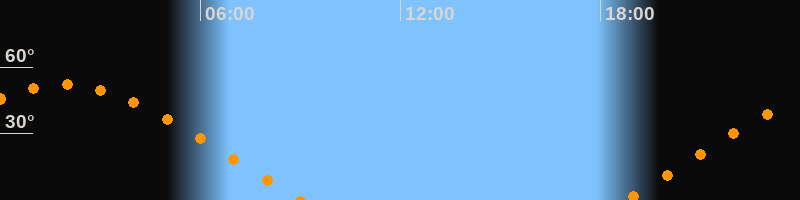 | Aufgang | 18:43 Uhr im Osten (αAz = 68,9°) |