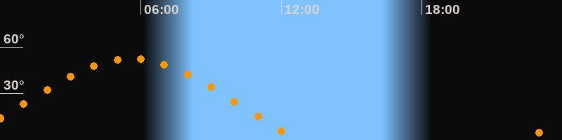 Höchster Stand (Kulmination)05:35 Uhr (h = 52,4°)
