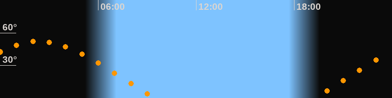 Aufgang19:10 Uhr im Osten (αAz = 68,4°)