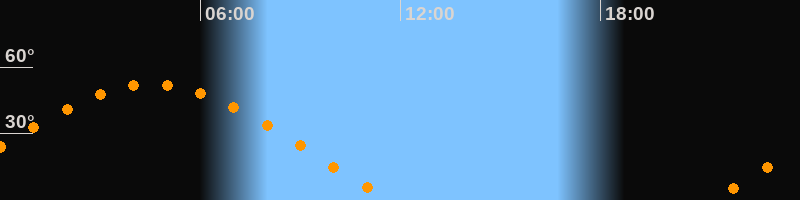 Höchster Stand (Kulmination)04:32 Uhr (h = 52,3°)