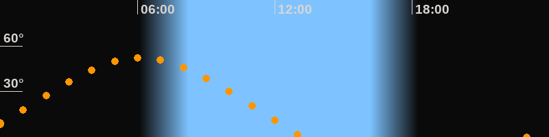 Höchster Stand (Kulmination)06:08 Uhr (h = 52,3°)
