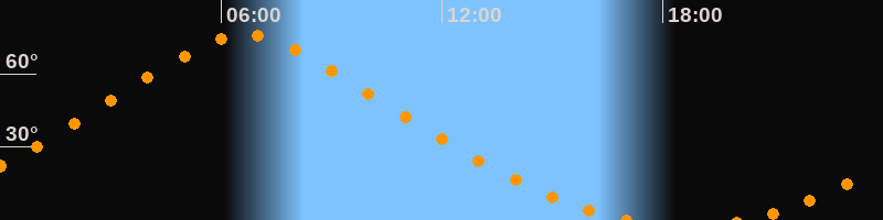 | Höchster Stand (Kulmination) | 06:39 Uhr (h = 75,9°) |
