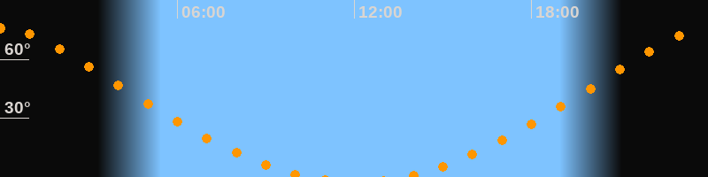 | Aufgang | 13:31 Uhr im Norden (αAz = 17,5°) |