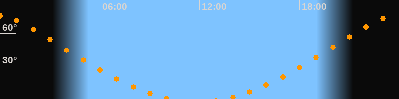 | Aufgang | 13:20 Uhr im Norden (αAz = 17,5°) |