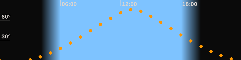 | Höchster Stand (Kulmination) | 13:10 Uhr (h = 75,9°) |
