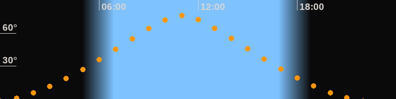| Höchster Stand (Kulmination) | 11:00 Uhr (h = 75,9°) |