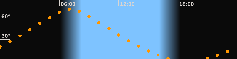 | Höchster Stand (Kulmination) | 07:05 Uhr (h = 75,9°) |