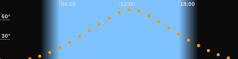| Höchster Stand (Kulmination) | 13:11 Uhr (h = 75,9°) |