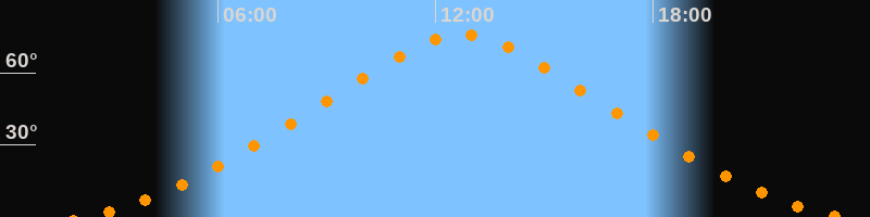 | Höchster Stand (Kulmination) | 12:45 Uhr (h = 75,9°) |