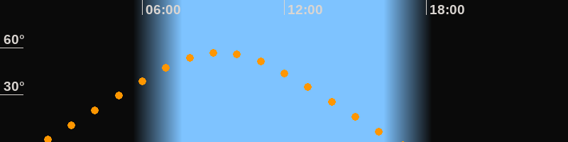 | Höchster Stand (Kulmination) | 09:16 Uhr (h = 57°) |