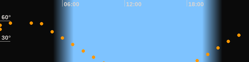| Aufgang | 18:39 Uhr im Nordosten (αAz = 60,5°) |