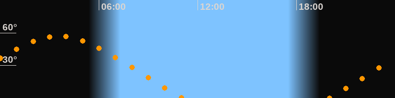 | Aufgang | 19:55 Uhr im Nordosten (αAz = 60,5°) |