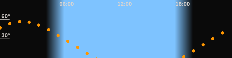 | Aufgang | 18:40 Uhr im Nordosten (αAz = 60,5°) |