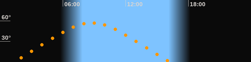 | Höchster Stand (Kulmination) | 08:46 Uhr (h = 57°) |