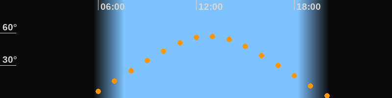 | Höchster Stand (Kulmination) | 12:45 Uhr (h = 57°) |