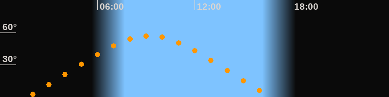 | Höchster Stand (Kulmination) | 09:12 Uhr (h = 57°) |