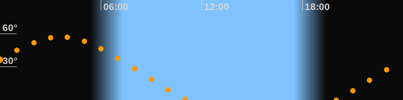 | Aufgang | 19:56 Uhr im Nordosten (αAz = 60,5°) |