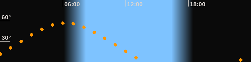 | Höchster Stand (Kulmination) | 06:13 Uhr (h = 57°) |