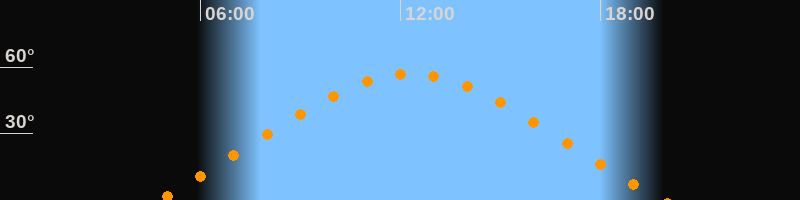 | Höchster Stand (Kulmination) | 12:18 Uhr (h = 57°) |