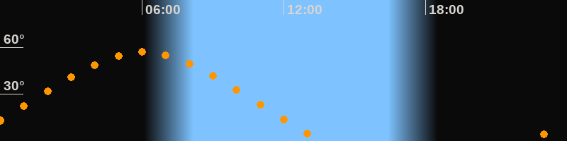 | Höchster Stand (Kulmination) | 06:03 Uhr (h = 57°) |