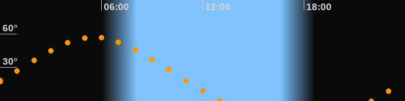 | Höchster Stand (Kulmination) | 05:33 Uhr (h = 57°) |