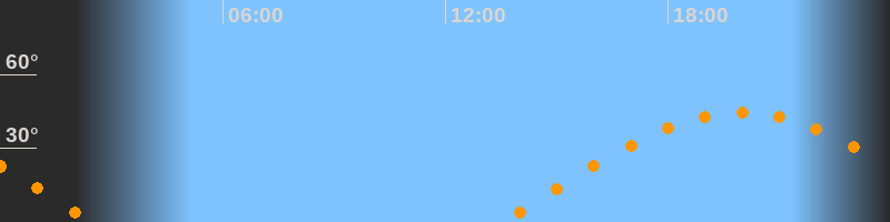 | Aufgang | 13:30 Uhr im Osten (αAz = 81°) |