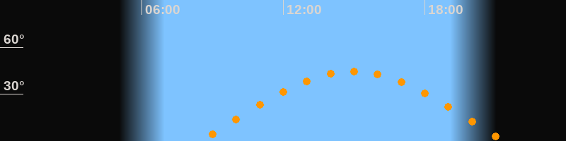 | Höchster Stand (Kulmination) | 14:55 Uhr (h = 44,5°) |