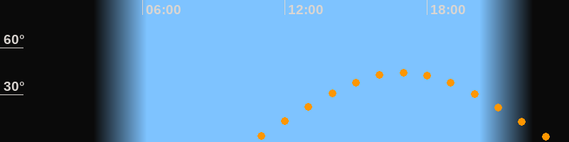 | Höchster Stand (Kulmination) | 16:59 Uhr (h = 44,3°) |
