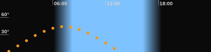 | Höchster Stand (Kulmination) | 07:16 Uhr (h = 44,3°) |