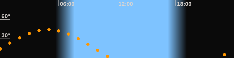 | Höchster Stand (Kulmination) | 04:54 Uhr (h = 44,3°) |