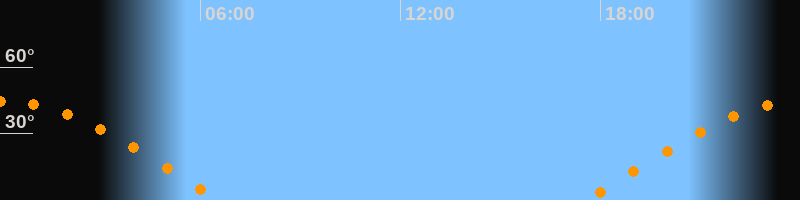 | Höchster Stand (Kulmination) | 00:03 Uhr (h = 44,5°) |