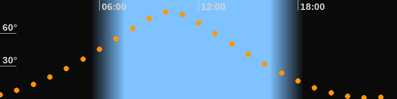 | Höchster Stand (Kulmination) | 10:14 Uhr (h = 79,7°) |